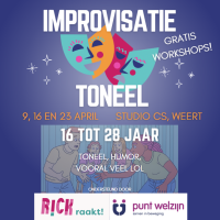 Op donderdag 9, 16 en 23 april kun je in Studio CS meedoen aan een reeks gratis workshops improvisatietheater (16-28 jr). Lees meer